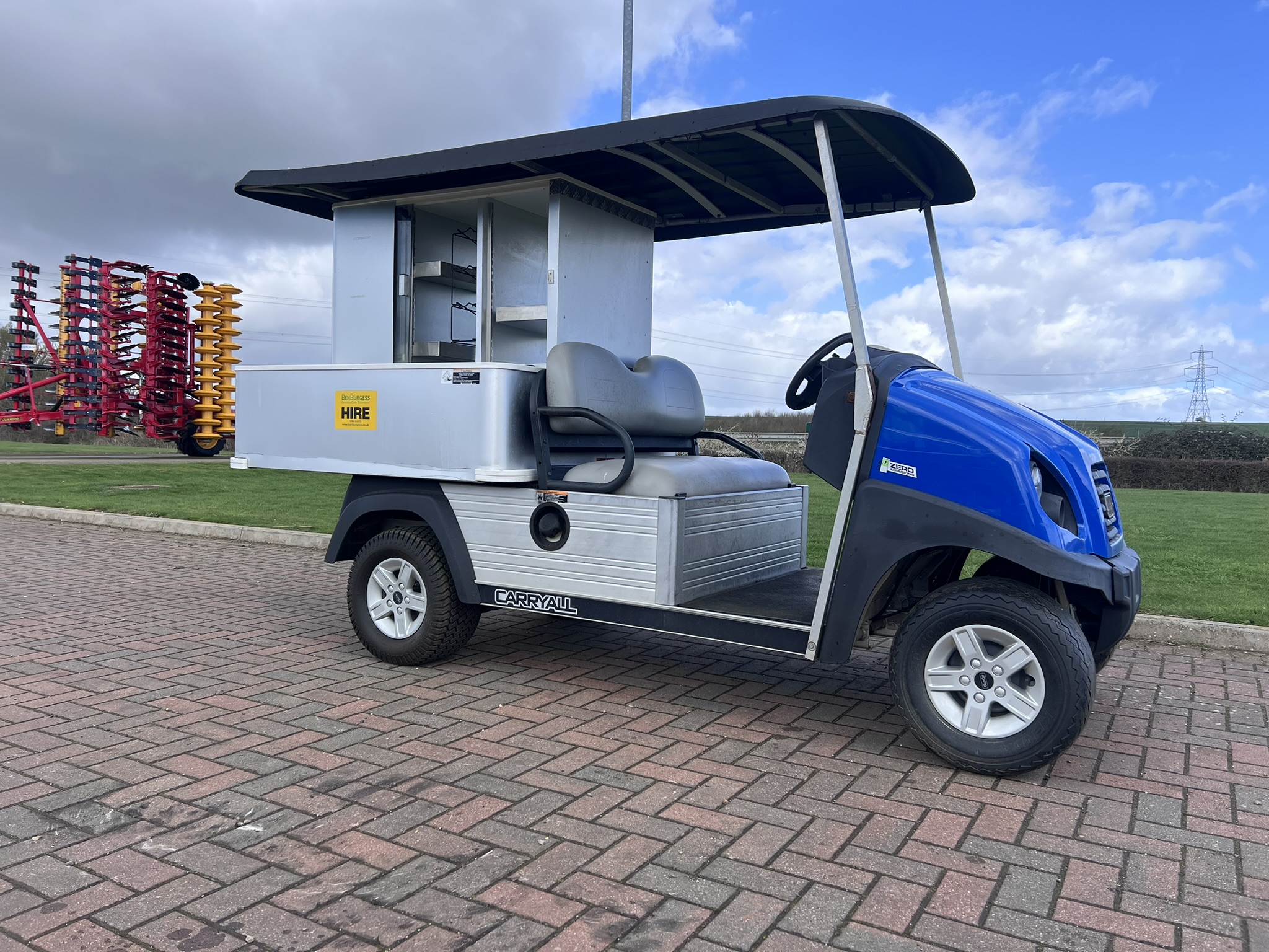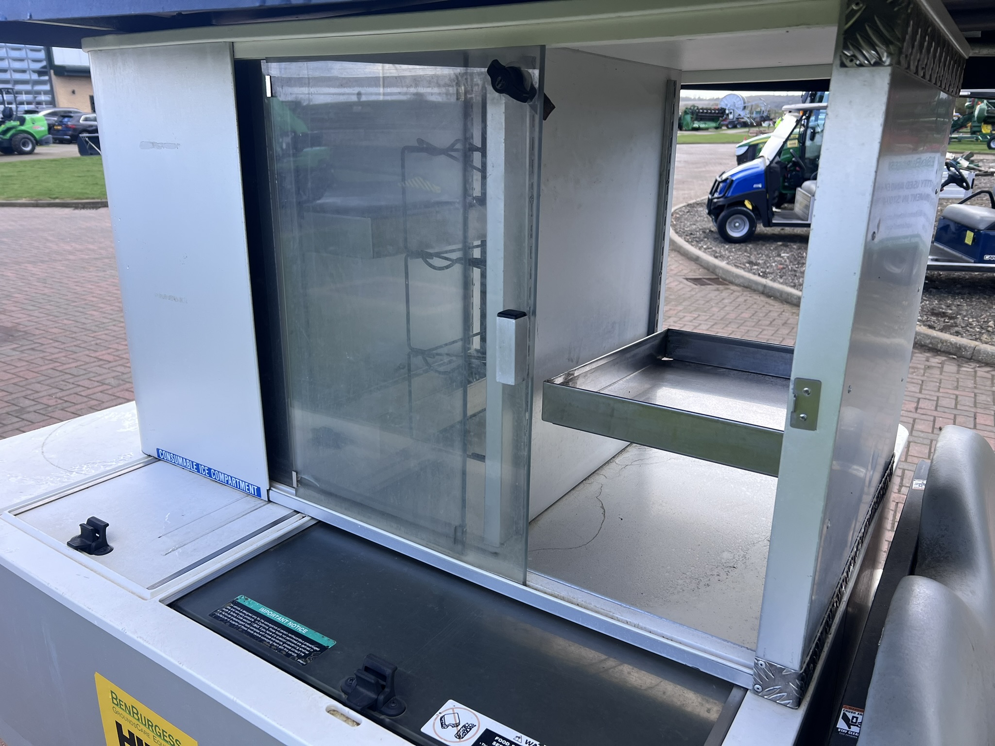 PETROL ENGINE 4 WHEEL BRAKES INSTALLED Cafe Express CABINET HD FRONT BUMPER DIFF GUARD FUEL GUAGE TWO CAMBRO BEVERAGE CONTAINERS CANOPY FRAME WINDSHIELD BODY COLOUR:GREEN