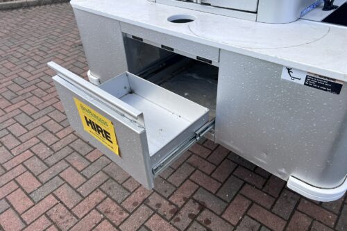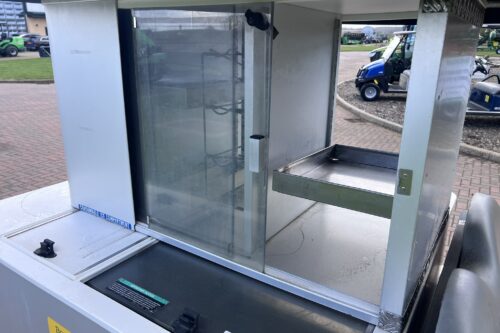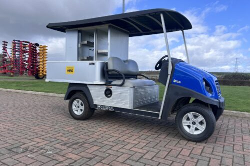 PETROL ENGINE 4 WHEEL BRAKES INSTALLED Cafe Express CABINET HD FRONT BUMPER DIFF GUARD FUEL GUAGE TWO CAMBRO BEVERAGE CONTAINERS CANOPY FRAME WINDSHIELD BODY COLOUR:GREEN