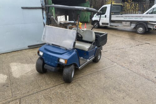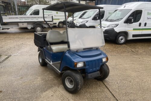 48V SYSTEM ELECTRIC UTILITY VEHICLE CARGO BOX GREY SEATS BLACK CANOPY HINGED WINDSCREEN BLUE COLOUR BODY