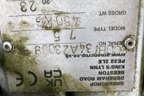 7.5M GALVANISED, ALRENA VERTICLE MACERATOR,VERTICLE FOLDING WINGS,C/W BOOM END BRAKES, FORKLIFT LIFTING POINTS, SELF SHARPENING DISTRIBUTORS, FULLY GALV, LIGHTING KIT, 45MM OUTLETS, 40MM HEAVY DUTY HINGES. -NO DOOR KIT **S/N:GCDBT34A23099**