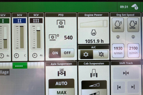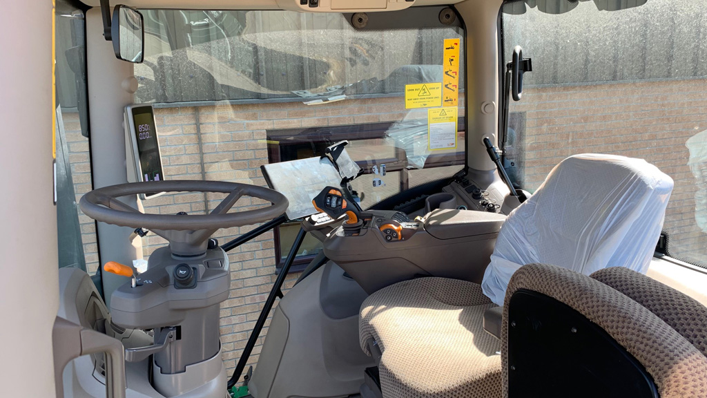 AUTOPOWR 50KM/H, COMFORTVIEW CAB WITH COMMANDPRO & HYDRAULIC CAB SUSPENSION, TLS+ WITH BRAKES, 3 PREMIUM E-SCV’S, B-POST DOOR, AUTOTRAC READY, PREMIUM SEAT, G5PLUS COMMANDCENTER, 900KG BPW, PICK-UP HITCH WITH HOOK+DRAWBAR, PREMIUM LIGHT PACKAGE, HYD IPM, HYDRAULIC & AIR TRAILER BRAKES, 650/65R38 540/65R28 NO PREF.