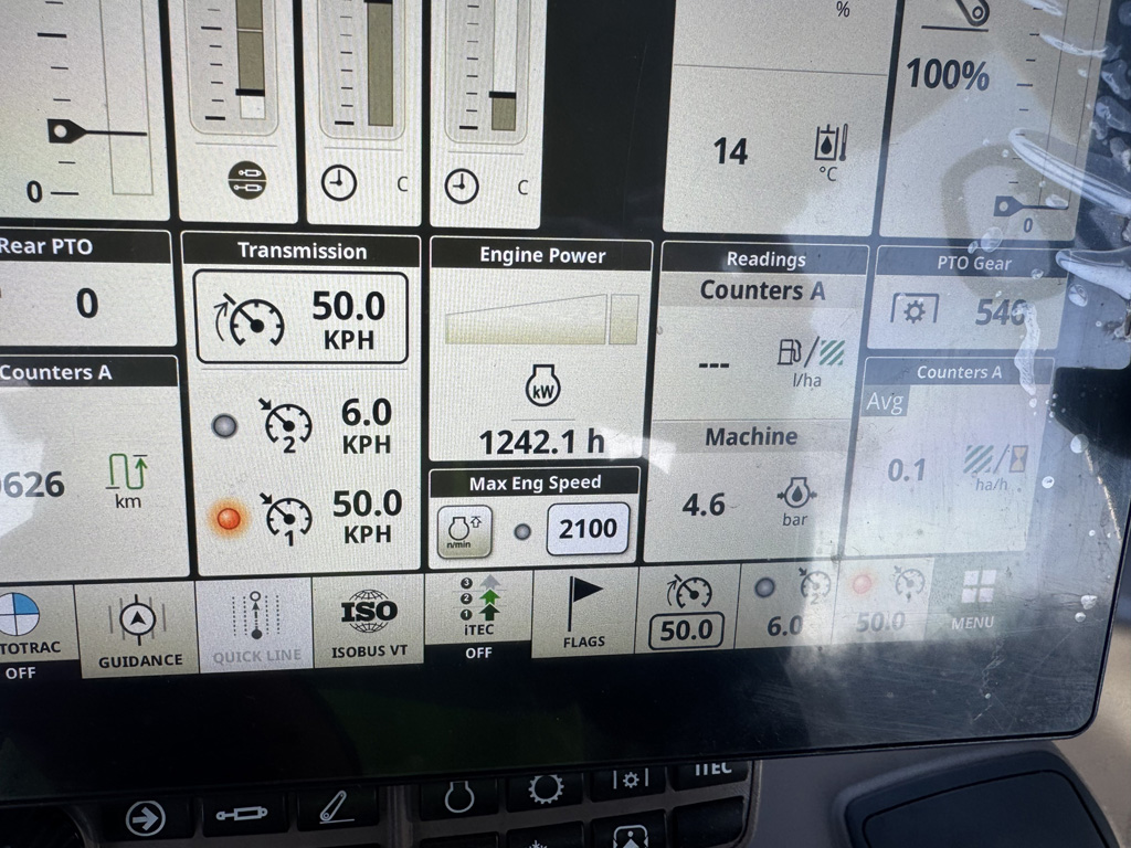 AUTOPOWR 50KM/H, COMFORTVIEW CAB WITH COMMANDPRO & HYDRAULIC CAB SUSPENSION, TLS+ WITH BRAKES, 3 PREMIUM E-SCV’S, B-POST DOOR, AUTOTRAC READY, PREMIUM SEAT, G5PLUS COMMANDCENTER, PREMIUM FRONT HITCH, E-JOYSTICK, HYDRAULIC & AIR TRAILER BRAKES, 650/65R38 540/65R28 PG WARRANTY JAN2027 OR 2500HRS