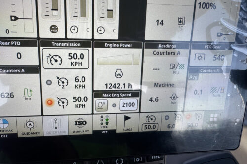 AUTOPOWR 50KM/H, COMFORTVIEW CAB WITH COMMANDPRO & HYDRAULIC CAB SUSPENSION, TLS+ WITH BRAKES, 3 PREMIUM E-SCV’S, B-POST DOOR, AUTOTRAC READY, PREMIUM SEAT, G5PLUS COMMANDCENTER, PREMIUM FRONT HITCH, E-JOYSTICK, HYDRAULIC & AIR TRAILER BRAKES, 650/65R38 540/65R28 PG WARRANTY JAN2027 OR 2500HRS
