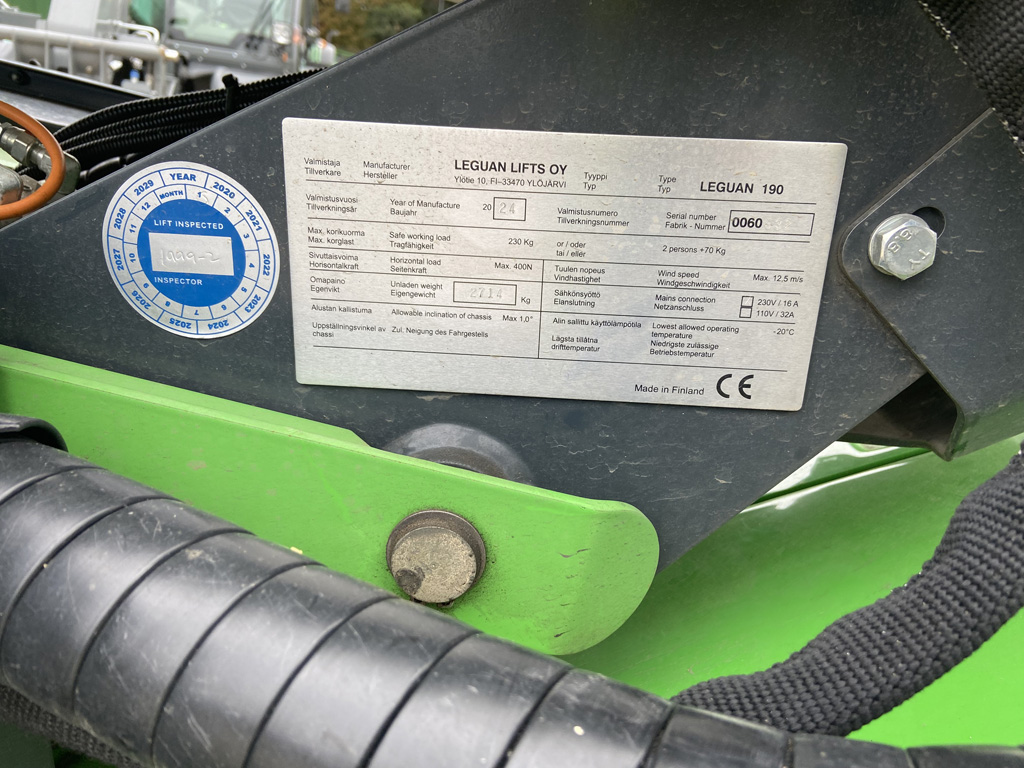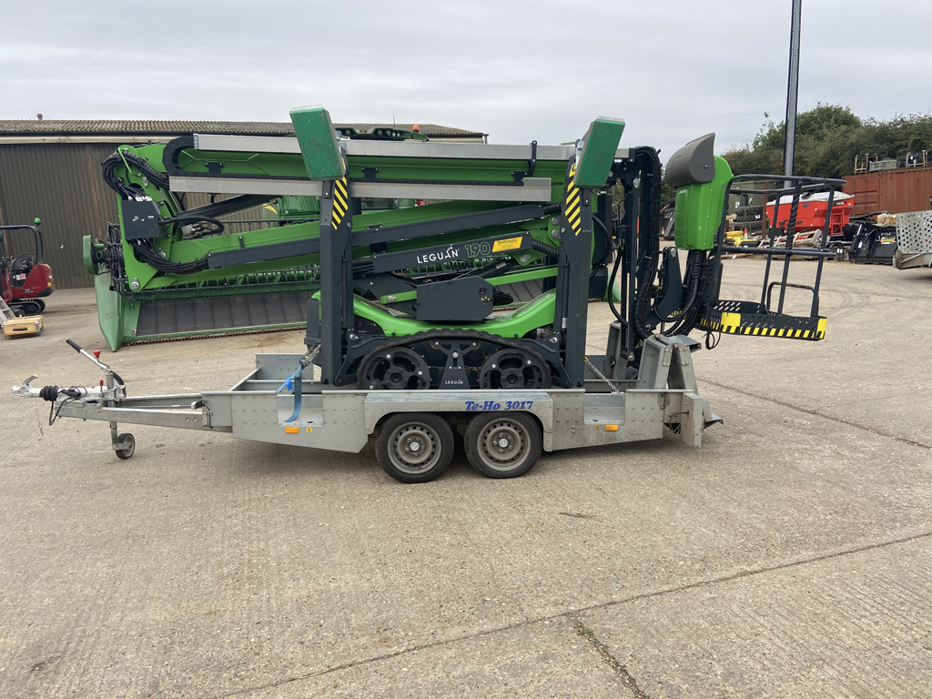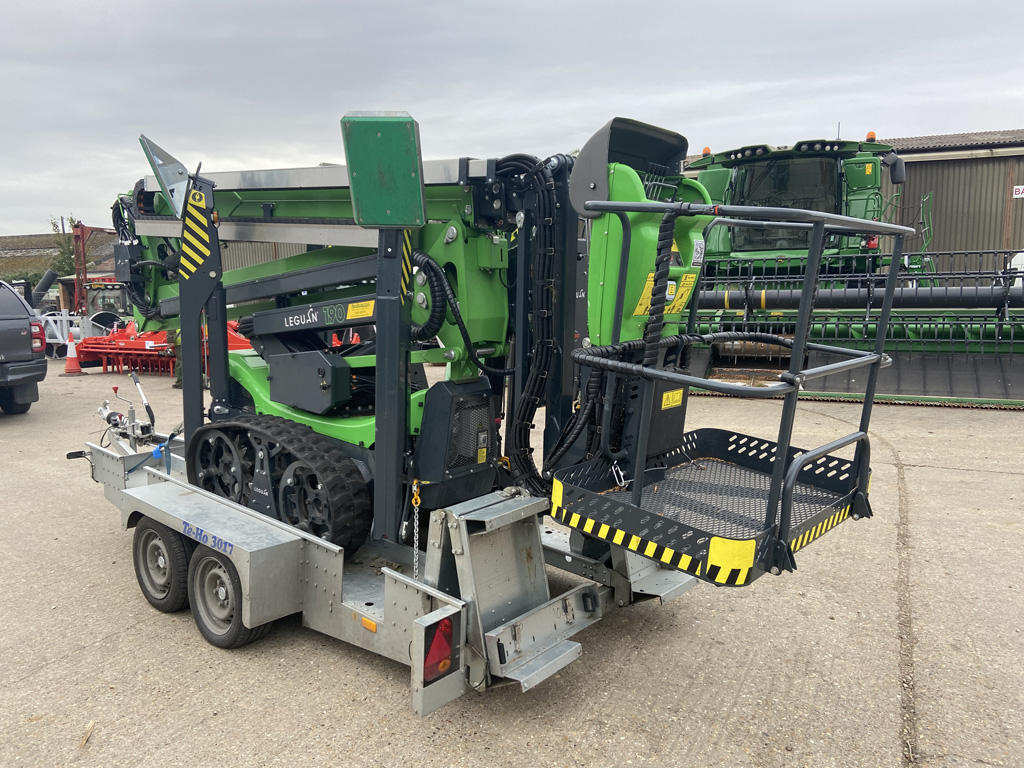 LEGUAN 190 ACCESS PLATFORM 19M ACCESS, BLACK WARNING TAPES RUBBER TRACKS.REMOTE CONTROL LARGER PLATES FOR OUTRIGGERS OUTRIGGER BEACONS. HOSE TO PLATFORM, LED LIGHTS FOR OPERATING CONTROLS ON PLATFORM LED SPOT;LIGHTS ON PLATFORM 2PCS LEGUAN TRAILER SUMMER TYRES