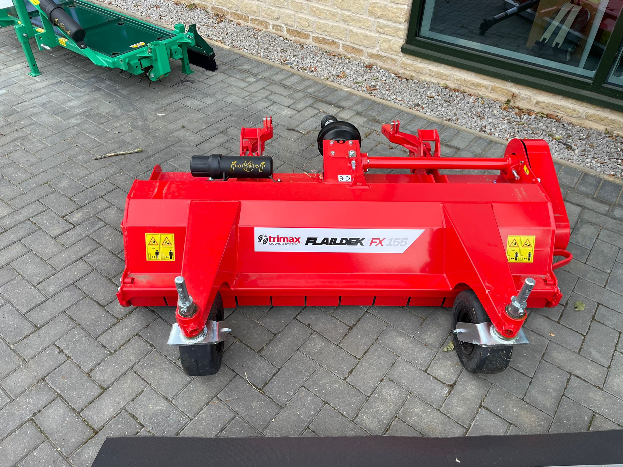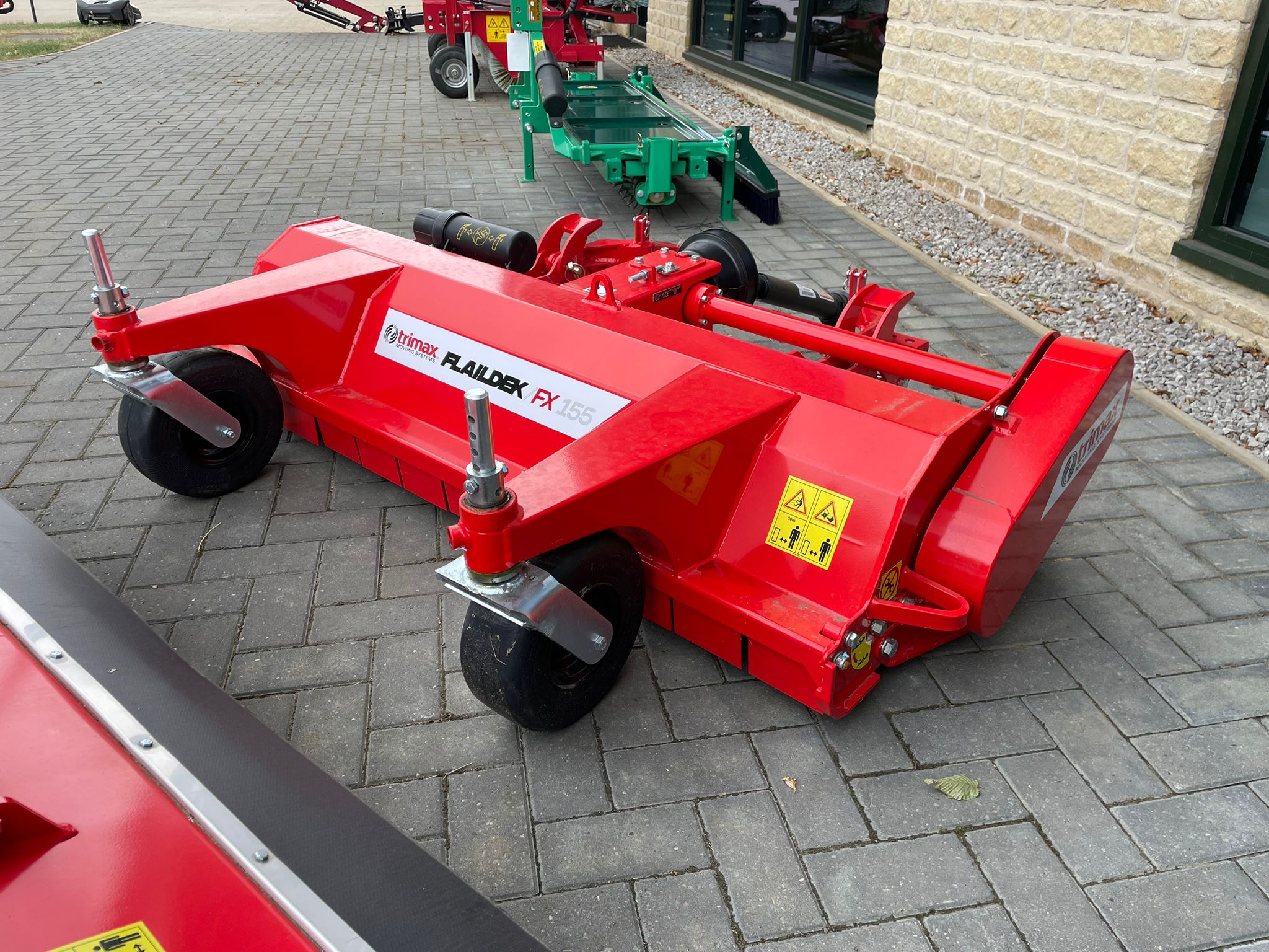 EX DEMO TRIMAX FLAILDEK FX155 OUTFRONT FLAIL DECK. 152 CM (60 IN) CUTTING WIDTH, 32 HIGH-STRENGTH GAMMA FLAILS, AND FULL-WIDTH REAR ROLLER FOR STRIPING. FEATURES PATENTED CONVERTER SYSTEM FOR SHORT OR TALL GRASS. COMPATIBLE WITH JOHN DEERE 1500 SERIES. ROBUST AND LOW MAINTENANCE.