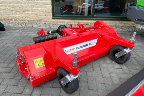 EX DEMO TRIMAX FLAILDEK FX155 OUTFRONT FLAIL DECK. 152 CM (60 IN) CUTTING WIDTH, 32 HIGH-STRENGTH GAMMA FLAILS, AND FULL-WIDTH REAR ROLLER FOR STRIPING. FEATURES PATENTED CONVERTER SYSTEM FOR SHORT OR TALL GRASS. COMPATIBLE WITH JOHN DEERE 1500 SERIES. ROBUST AND LOW MAINTENANCE.