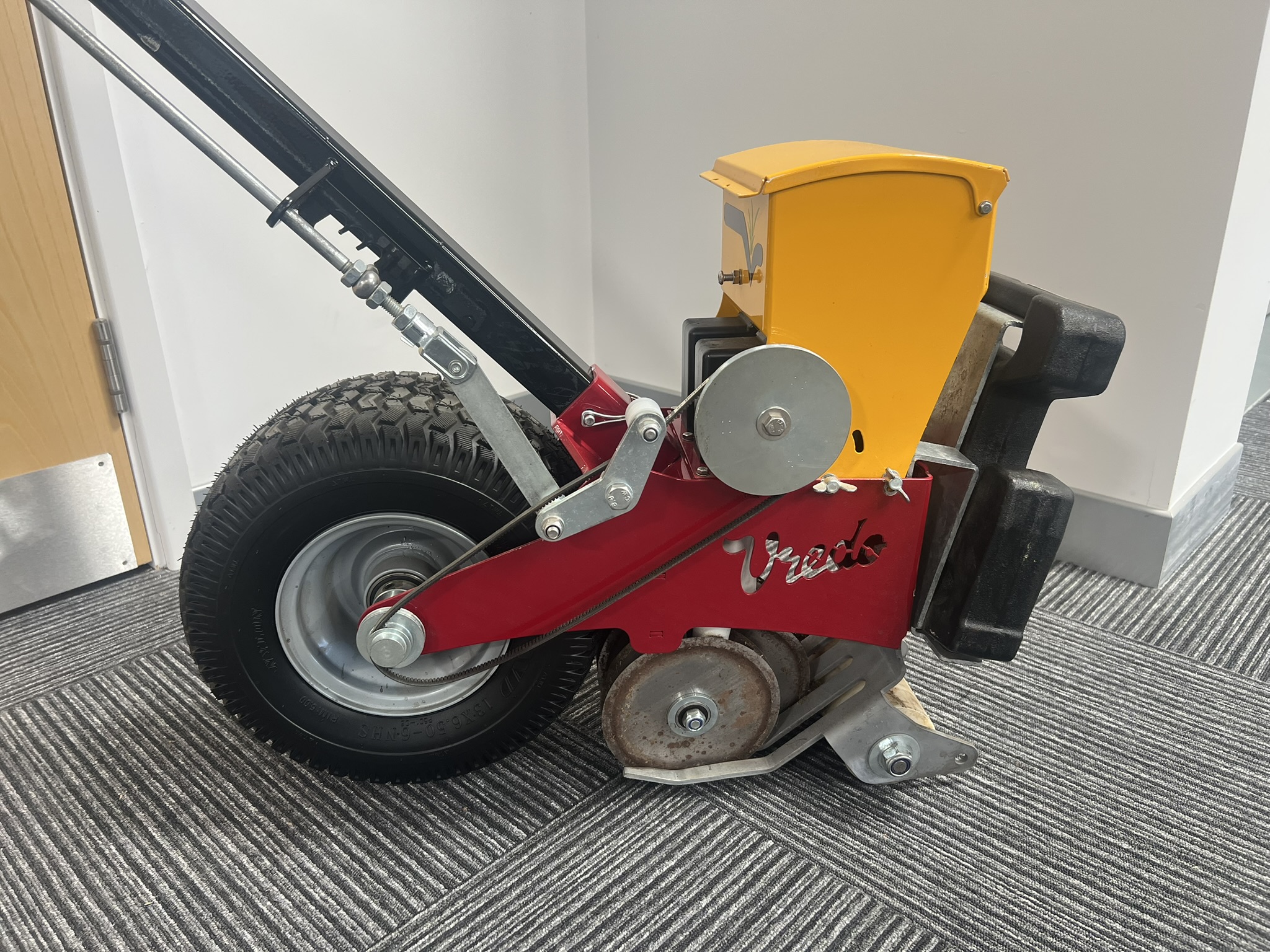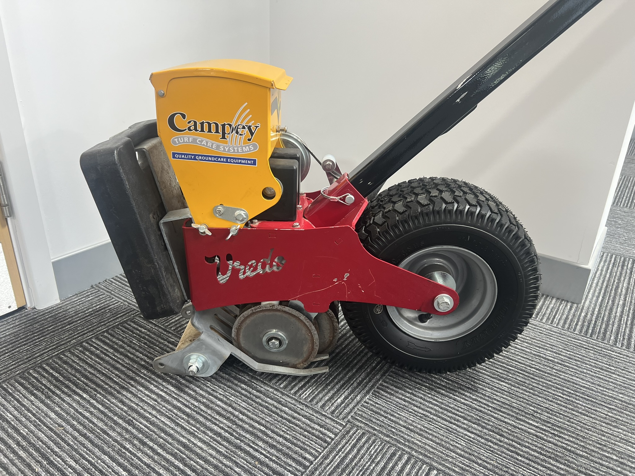EX DEMO VREDO TURF BUDDY DOUBLE DISC SYSTEM WITH 15CM DISCS, DESIGNED TO SOW 4 PRECISE ROWS AT 35MM SPACING, WITH CONSISTENT SEED DEPOSIT DEPTH OF 10-20MM, FEATURING A 3 LITRE SEED HOPPER FOR EFFICIENT OPERATION. A VREDO TURF BUDDY UNIT BUILT FOR ACCURATE, RELIABLE TURF SEEDING PERFORMANCE. DELIVERY AVAILABLE.