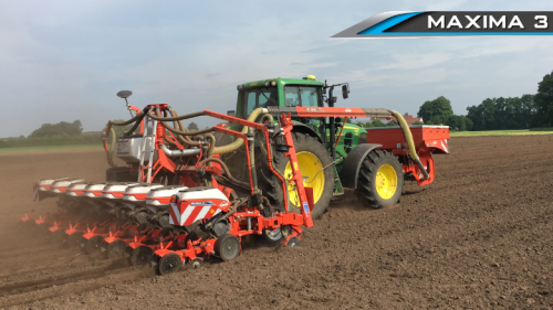 Maxima 3 precision drills are suitable for drilling maize, sunflower, beetroot, sugar beet, peas, beans, onions and other crops where row spacings from 37.5 to 80cm are used. The range includes 12 models in a choice of configurations, with electric drive versions being available in mounted formats including telescopic, foldable and telescopic with adjustable spacing.
