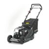 - The easy-to-empty grass bag can be lifted through the handlebars.