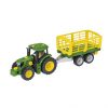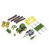 Discover the new John Deere CONSTRUCTION Line. Build your own John Deere 6215 R tractor in a scale of approx. 1:24. Take the chassis, mount the tyres, the seat, the driver’s cabin and the engine bonnet. Do you want to use the front loader to load the bales of hay onto the hay cart? Mount the hay cart attachment on your trailer. Or do you want to transport wood? Then convert the trailer into a wood transporter. Don’t forget the counterweight on the front of the tractor.