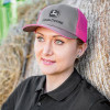 John Deere Pink / Grey Mesh Back Cap with embroidered logo and adjustable snap back closure.
