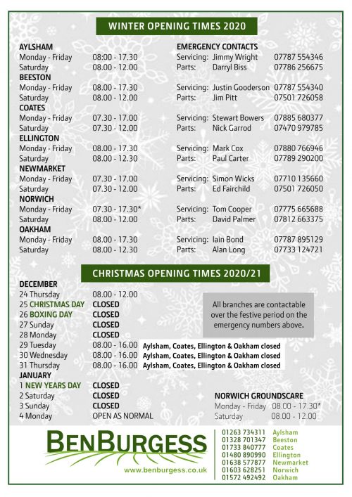 Winter opening hours and emergency contacts 2020